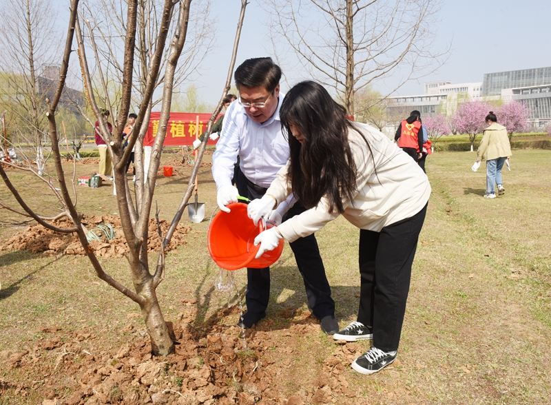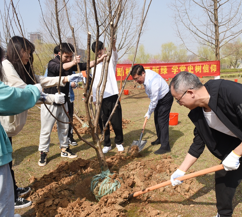 “一边往树坑里填土,一边和老师们聊学习、聊生活,我觉得特别开心,挥锹铲土似乎都更有劲儿了!这大概就是劳动的魅力所在吧。”谈起今天的活动,同学们兴奋不已,“今天的活动是一堂最直接、最生动的思想政治课、生态文明课、社会实践课,在植树节里学党史,提高了党性修养,强化了党性锻炼,也亲手种下了人生中的第一棵树,期待它们生根,与我们共同成长。”