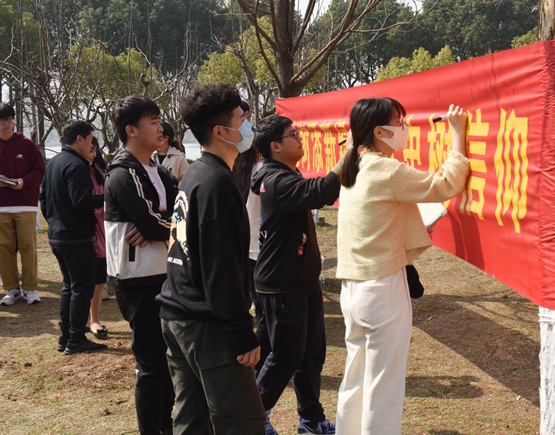 史书记以“从植树节谈起——学习贯彻习近平生态文明思想”为题,用一个小故事与一组数据介绍了植树节的由来,展示了我国生态环境近三十年来发生的历史性、转折性、全局性变化。党课围绕习近平生态文明思想概述、习近平生态文明思想创新实践、奋力开创美丽中国建设新局面、践行习近平生态文明思想四个方面,将理论与实践相结合,历史与现实相贯通,以鲜活的典型案例和生动的语言表达,深入解读了中国特色社会主义生态文明建设的发展历程。“我们凯发k8官网有着得天独厚的自然环境,拥有鹭鸟自然保护区,是南京十大‘最美高校’第一名。”史书记立足凯发实际,介绍了近年来凯发在探索具有南工程特色的生态文明建设、劳动教育模式等方面的生动实践案例,号召大家深入贯彻习近平生态文明思想,增强爱绿、植绿、护绿意识,践行社会主义核心价值观,以实际行动为创建全国文明校园添砖加瓦。“希望大家用汗水浇灌收获,以实干奋力前行!”史书记深情寄语现场同学们。