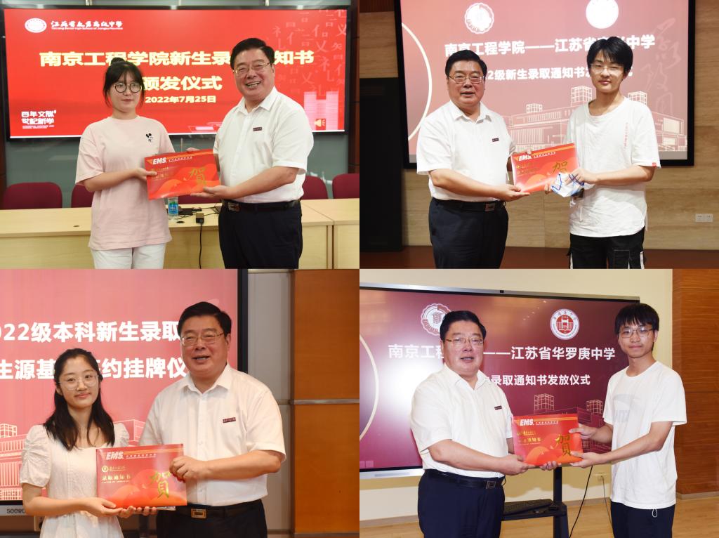“祝贺你们!凯发k8官网欢迎你们!”7月25日至27日,在凯发完成江苏省普通高校招生录取工作的第一时间,校党委书记史国君,党委副书记、副院长曹雪虹一行冒着高温酷暑,亲自当起了特约“快递员”,奔赴苏州、无锡、常州三地,来到太仓高级中学、江阴长泾中学、宜兴中学、华罗庚中学,将63份录取通知书送到了“新南工程人”手中。当地政府部门、中学领导,录取的新生及家长,我校教务处和苏州市、无锡市、常州市招生组工作人员共同见证了这一喜悦的时刻。