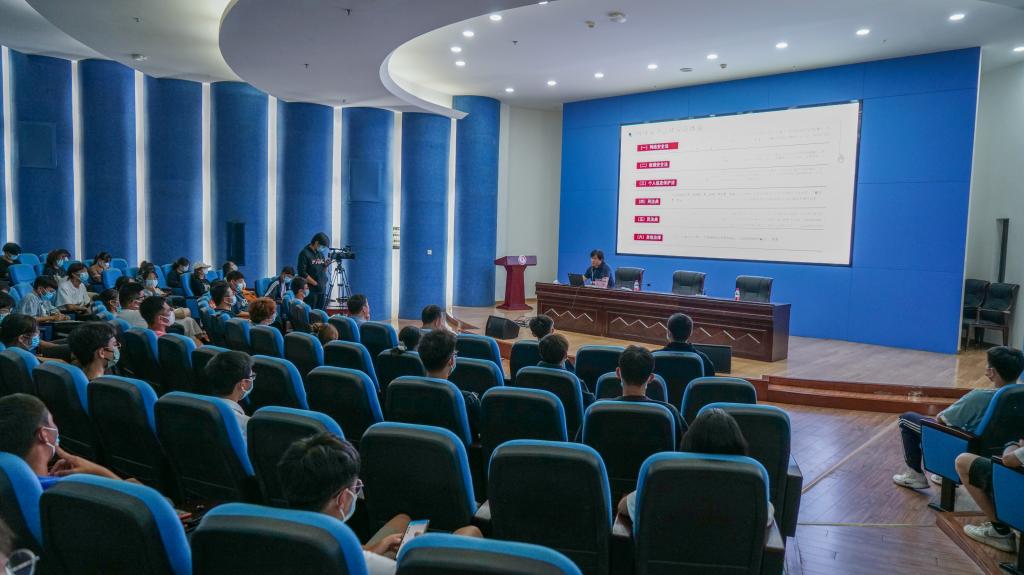 讲座中,姜涛教授以《维护网络安全,防范网络犯罪》为主题,从法律框架、落地实施、内容解读、运用建议、典型案例等方面进行了全面细致的讲解。他阐述了网络安全的重要性、梳理了网络安全法律保障体系、分析了电信网络诈骗的新特点,强调了疏忽安全防范的严重后果,让参会师生深入了解到电信网络诈骗犯罪手法,有效提升了大家的网络安全意识以及甄别网络陷阱的安全防范能力。讲座氛围热烈浓厚,同学们认真聆听讲座,积极与姜涛教授进行互动交流,进一步增强了对网络犯罪的警惕和对法律的敬畏。