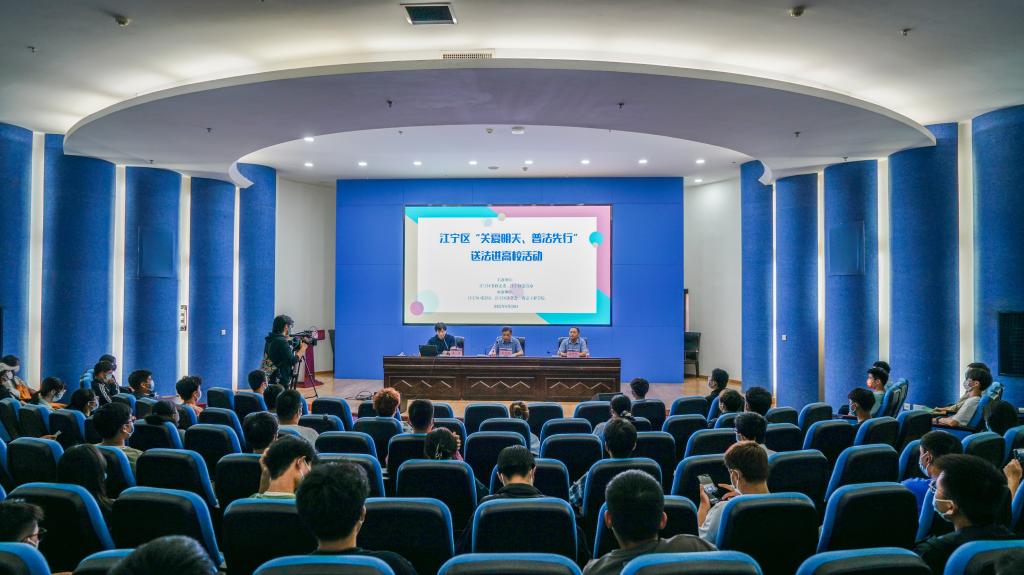 为深入学习贯彻习近平法治思想,提升全校师生法治意识和法律素养,强化依法治校基础,踔厉奋发迎接党的二十大召开,9月29日下午,凯发与江宁区联合举办“关爱明天,普法先行”主题宣传活动。活动邀请南京师范大学法学院教授姜涛在图书馆学术报告厅为我校大一新生开展法律专题讲座,并通过在线直播与全区师生同上“第一堂法治课”,江宁区司法局副局长苏克刚出席参加讲座。
