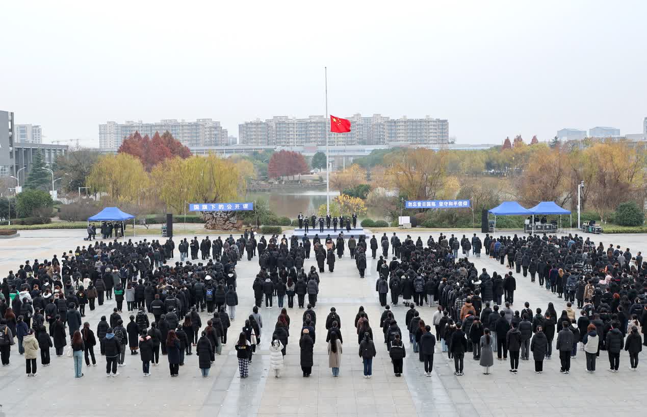 山河肃穆、草木含悲。12月12日,南京师范大学师生在随园校区举行“铭记历史 祈愿和平”南京大屠杀死难者国家公祭日纪念活动。1937年冬天,南师大随园校区曾是南京国际安全区,守护了数以万计的妇女儿童。活动当日,在100号楼前的大草坪上,上百名南师学子参加悼念活动,列队秉烛,用烛灯在草坪中央拼出“南京”“12.13”字样与“和平鸽”图案,以此表达对南京大屠杀遇难同胞的深深追思。在肃穆庄重的氛围中,同学们手捧蜡烛灯,围绕“南京”“12.13”字样与“和平鸽”图案静走一周,在荧荧烛火中缅怀逝者,寄托哀思,祈愿和平。