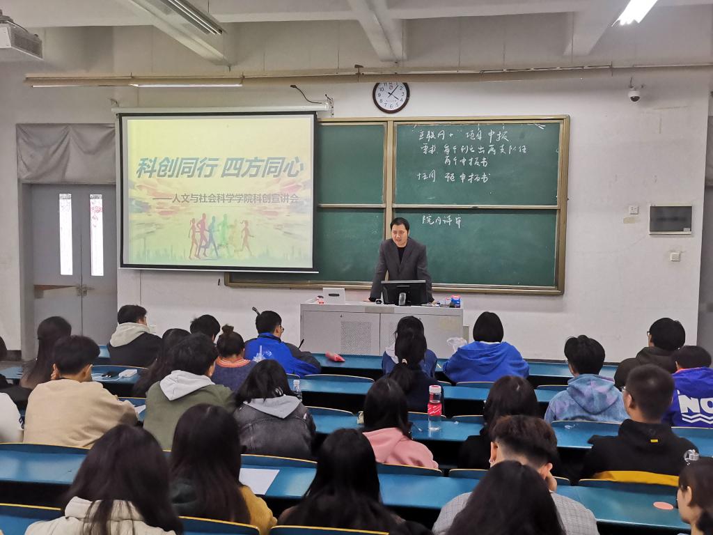 为调动同学们参加大学生创新创业竞赛的积极性,推动学生综合素质的全面提高,11月20日下午,人文与社会科学学院于设北125举办科创宣讲会。社工182班第二班主任赵利群老师、辅导员及大二全体同学参加此次会议。